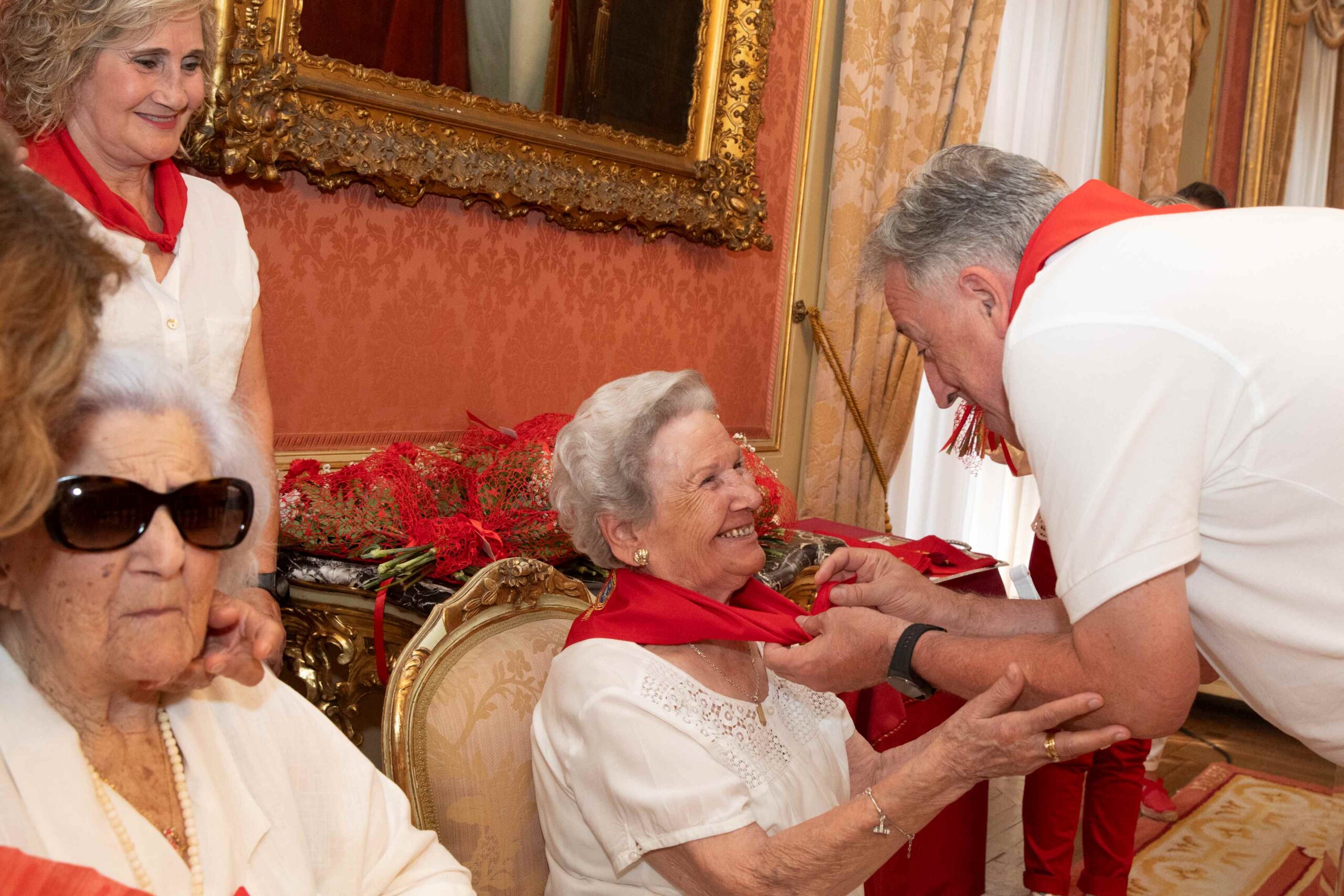 Han sido once mujeres y dos hombres. De ellos, ocho han acudido al acto y se les ha regalado pañuelicos con sus nombres bordados y un ramo de flores a cada quien. El alcalde de Pamplona, Joseba Asirón, suele visitar a los centenarios y centenarias el día de sus cumpleaños y les invita a participar en este emotivo acto que ha tenido lugar a las 11.30 horas en el Salón de Recepciones de la Casa Consistorial. La música ha estado a cargo del grupo de jotas Orgullo Navarro.
