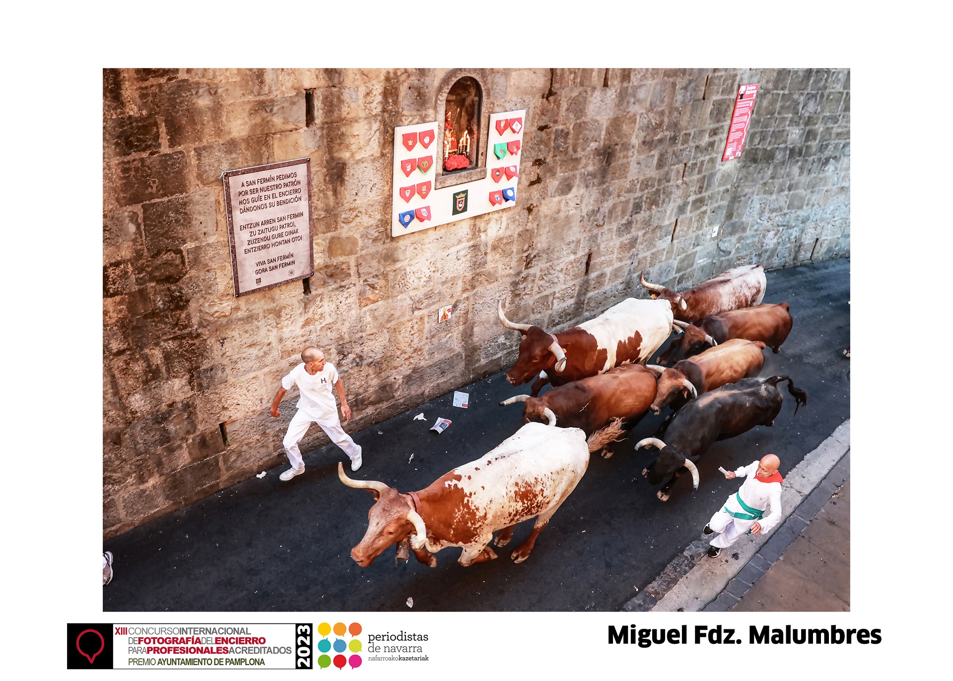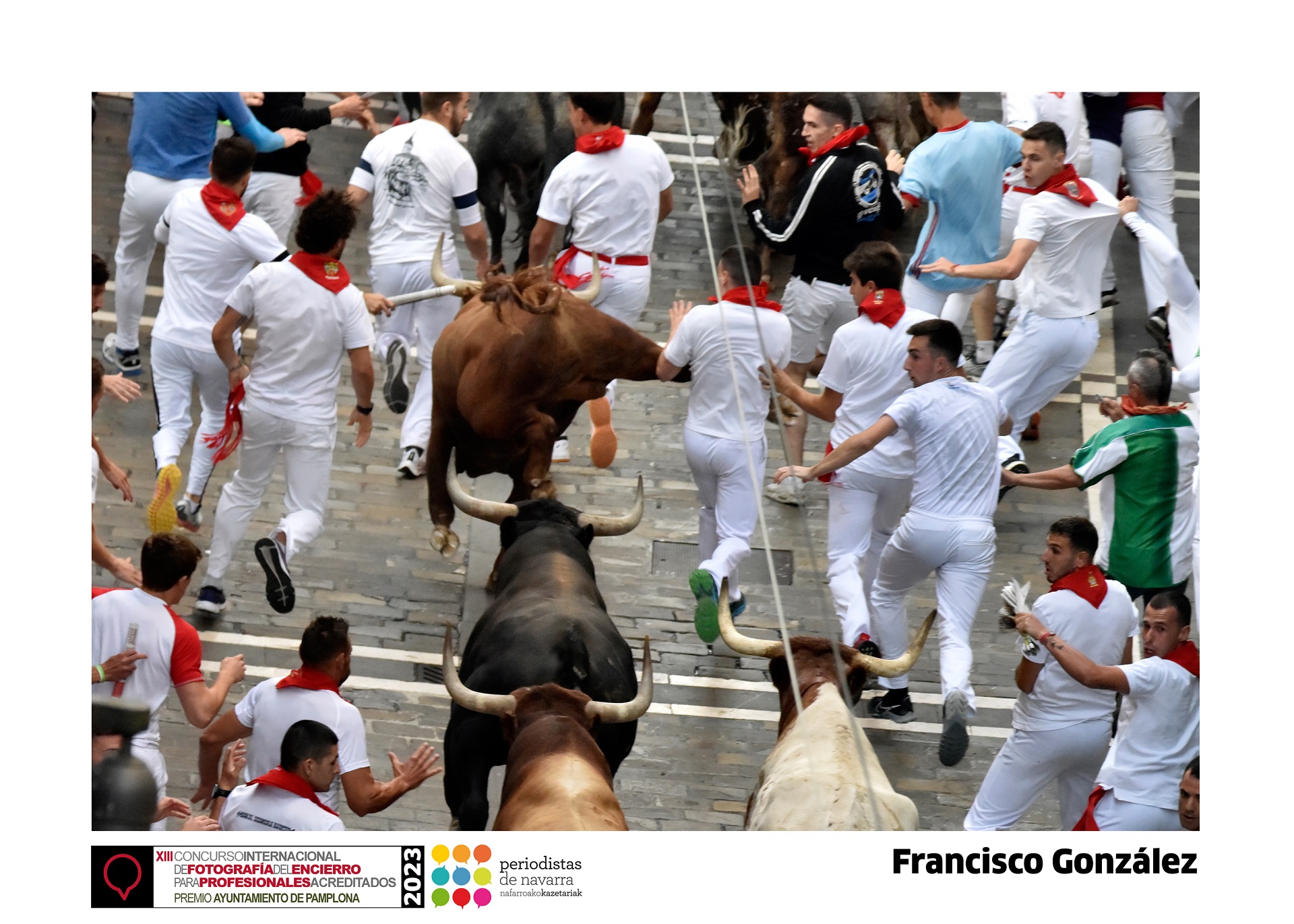 La Asociación de Periodistas de Navarra celebra la XIII edición del Concurso Internacional de Fotografía del Encierro, dirigido a profesionales acreditados en el Servicio de Comunicación del Ayuntamiento de Pamplona en esta mundialmente conocida carrera de los toros por las calles de Pamplona.